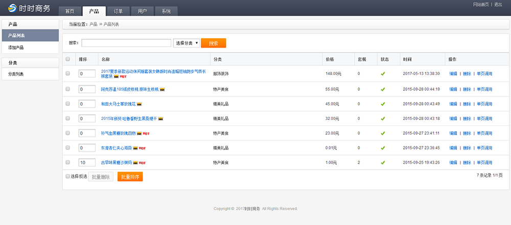 2.“產(chǎn)品”可以添加產(chǎn)品分類,產(chǎn)品信息列表簡潔,一目了然!