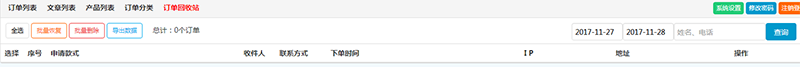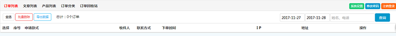 二、“訂單列表”,可以清晰的看到用戶下的訂單,也可以批量編輯“刪除”,“導(dǎo)出”,訂單的數(shù)據(jù)信息,快速,清晰,一目了然!