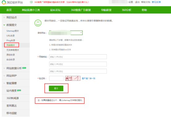提交地址:http://zhanzhang.so.com/?m=DeadlinkSubmit&a=index