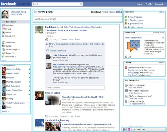 (Facebook主頁的Pagelets,每個矩形對應一個Pagelet。)