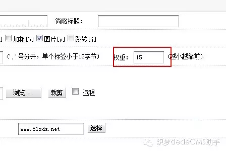 1、我們在使用dedecms發部文章的時候,經常希望文章可以按我們的需求來進行排序。這個時候就需要用到文章的權重值了,如下圖所示: