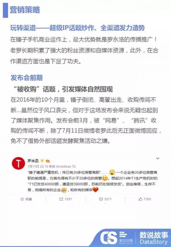 今天數(shù)說故事將從大數(shù)據(jù)角度揭秘被網(wǎng)友調(diào)侃為靠發(fā)布會(huì)吃飯的錘子科技的營銷套路。