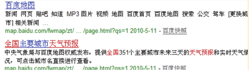 例子中的網(wǎng)頁,提供全國主要城市的天氣預(yù)報(bào)服務(wù),第一個(gè)結(jié)果中,使用了百度地圖默認(rèn)的title,用戶在搜索結(jié)果無法判斷這個(gè)網(wǎng)站提供的內(nèi)容是什么,也就不會(huì)點(diǎn)擊這個(gè)結(jié)果,第二個(gè)結(jié)果中,title很明確的寫明了所提供的內(nèi)容,用戶判斷起來比較容易,選擇這個(gè)結(jié)果的可能性比較大。