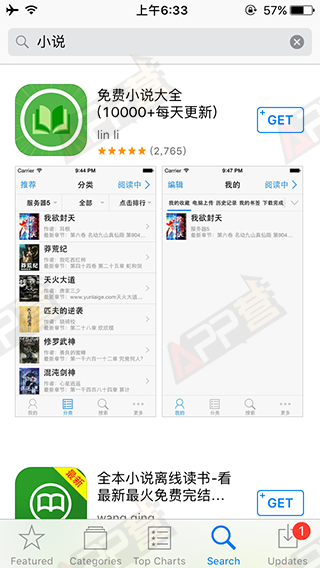 圖:App Store美國區搜索“小說”的結果